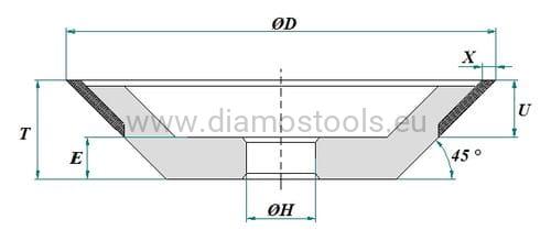Diamond grinding wheel 12V9/45 100x3x10x20 DIA64 C100 RB52MX