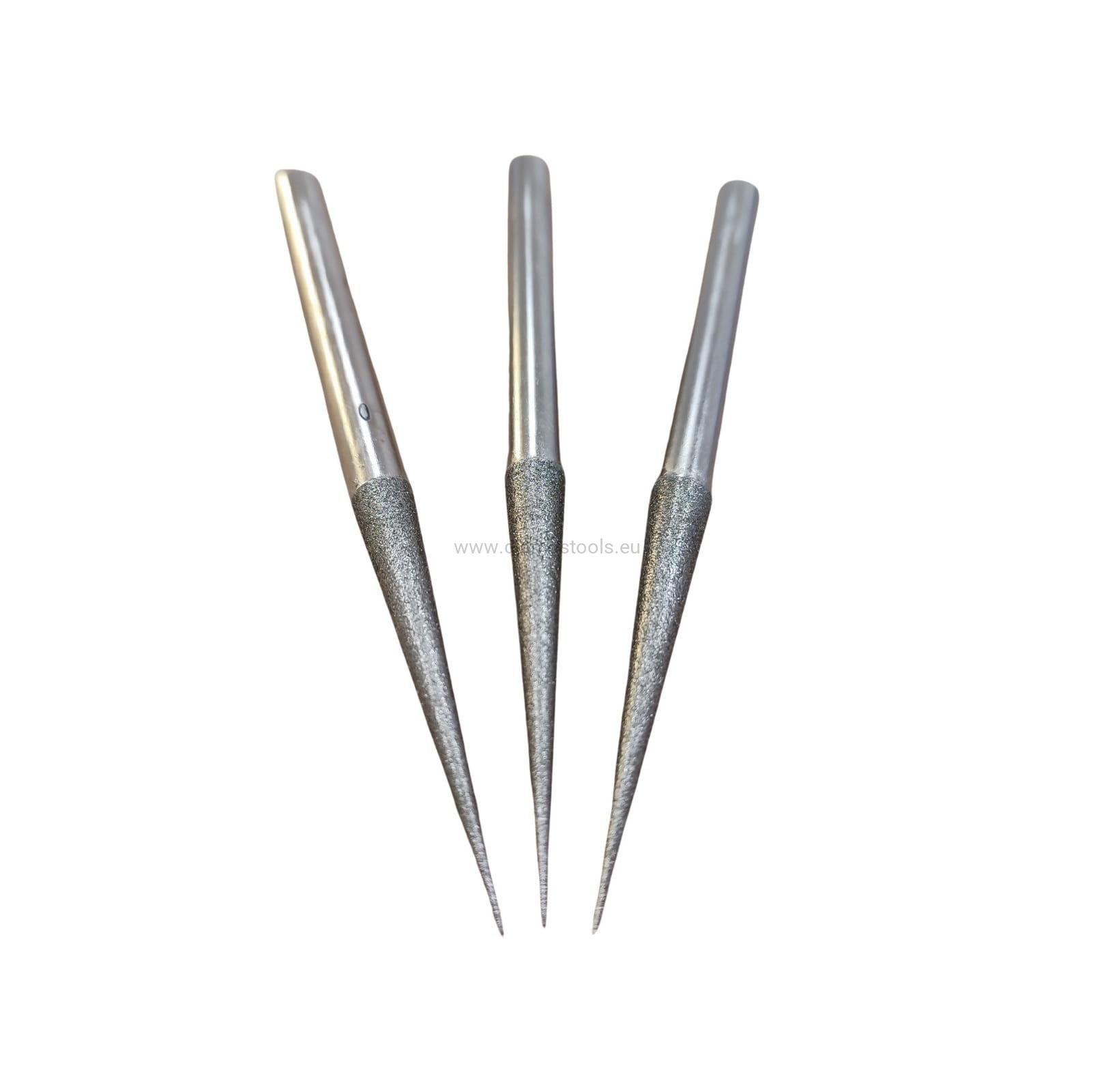 Diamond plated tapered pins are ideal for grinding or ripping tungsten carbide drawing